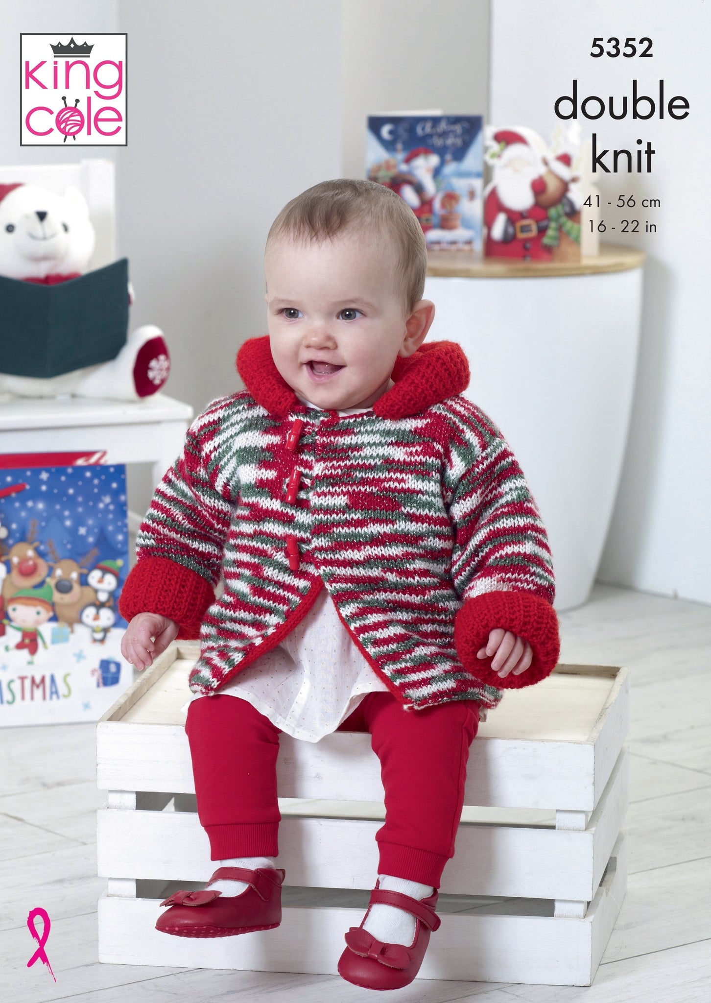 King Cole 5352 Reversible Duffle Coat in Glitz DK and Big Value DK Knitting Pattern